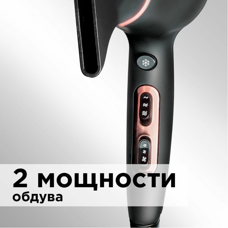 Компактный фен, довольно легкий. Есть несколько режимов обдува. Мощность обдува холодным воздуха для меня оптимальна.