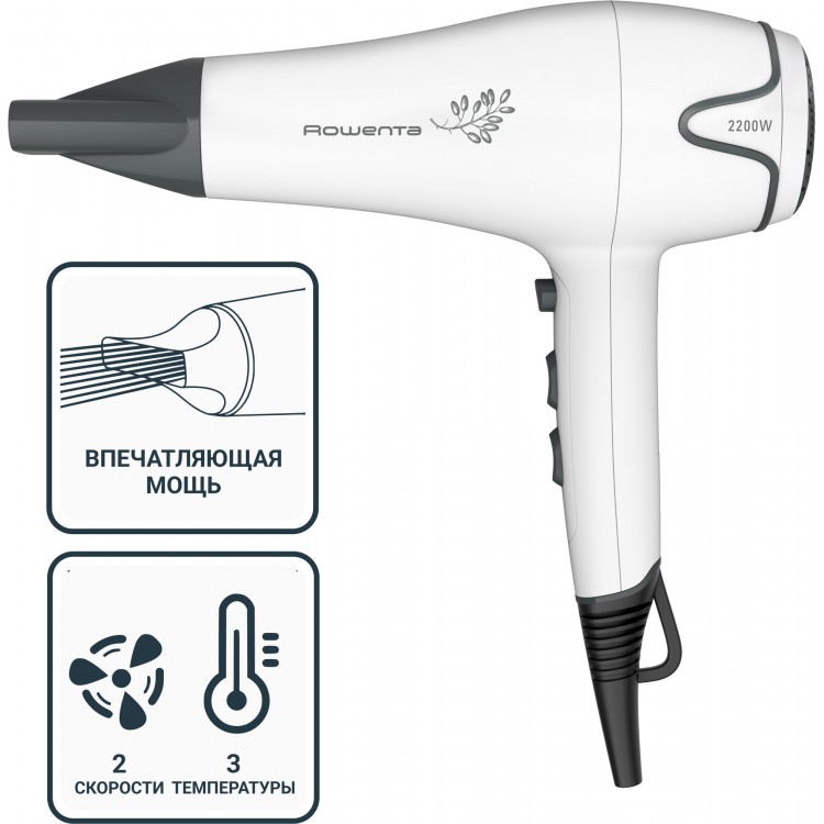 1. Высокая мощность. Фен Rowenta обладает мощностью 2200 Вт, что обеспечивает быстрое и эффективное высушивание волос.