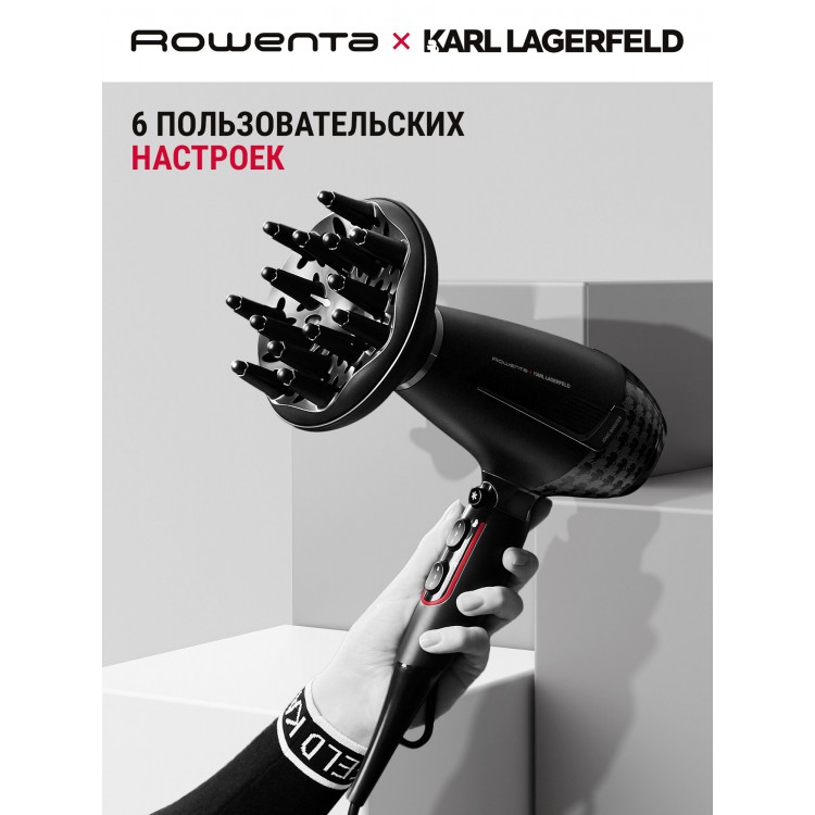 Фен Rowenta Karl Lagerfeld CV887LF0 чёрный: профессиональная укладка по выгодной цене!