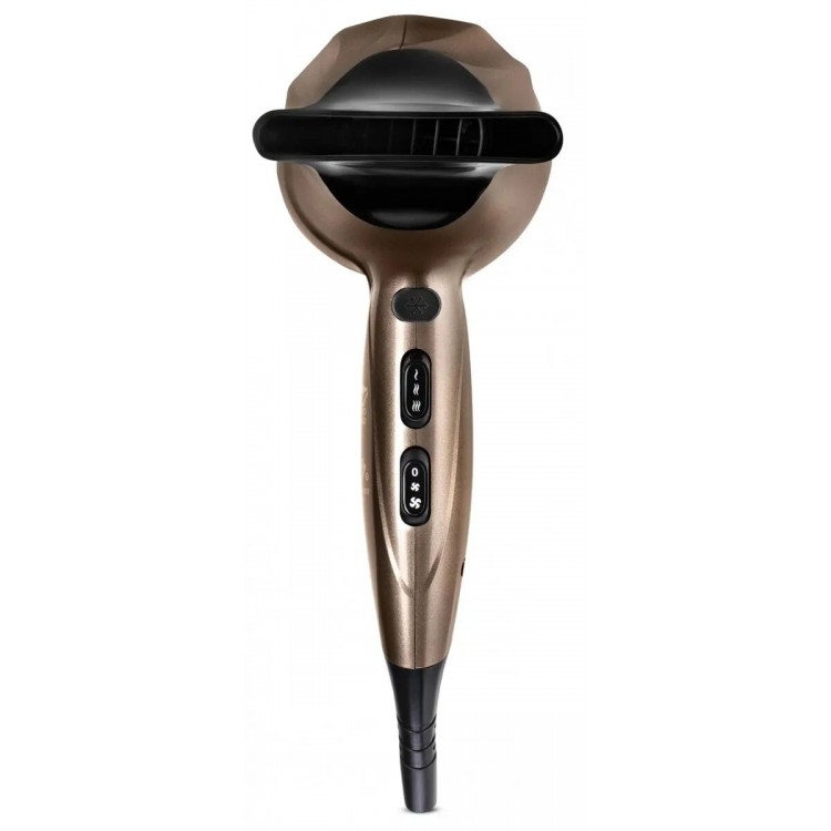 Модель имеет очень красивый и необычный дизайн – такую форму больше не встречала. Фен сам по себе очень удобный - что ручка, что шнур, что расположение кнопок переключения режимов. К работе никаких нареканий – мощный воздушный поток, турмалиновая ионизация полностью снимает электризацию волос. Мощность просто запредельная – 2400 Вт. Сушит мои длинные волосы не на самой высокой температуре за 5 минут. Насадка-концентратор такое ощущение, что увеличивает мощность воздушного потока многократно. Недостатков за полгода эксплуатации так и не нашлось и надеюсь, что уже и не найдется.