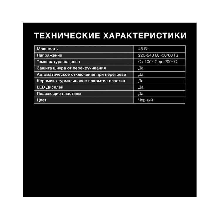 Мощности в 45 Вт для моих пушистых волос по утрам в вполне себе хватает что бы сделать красота за несколько минут. В руке держится легко, и не нагревается что важно ручка от него. Сама пластина керамика-турмалин.