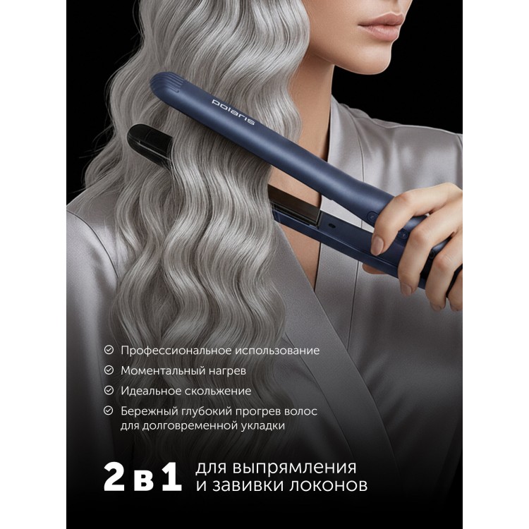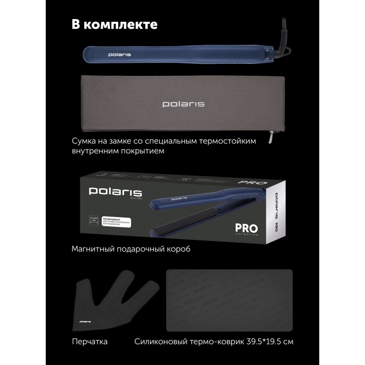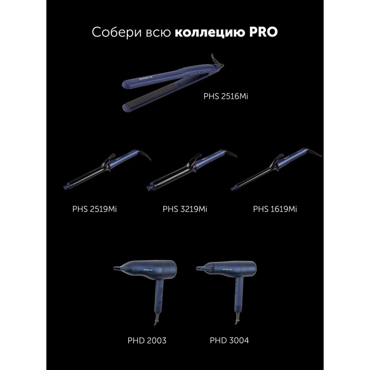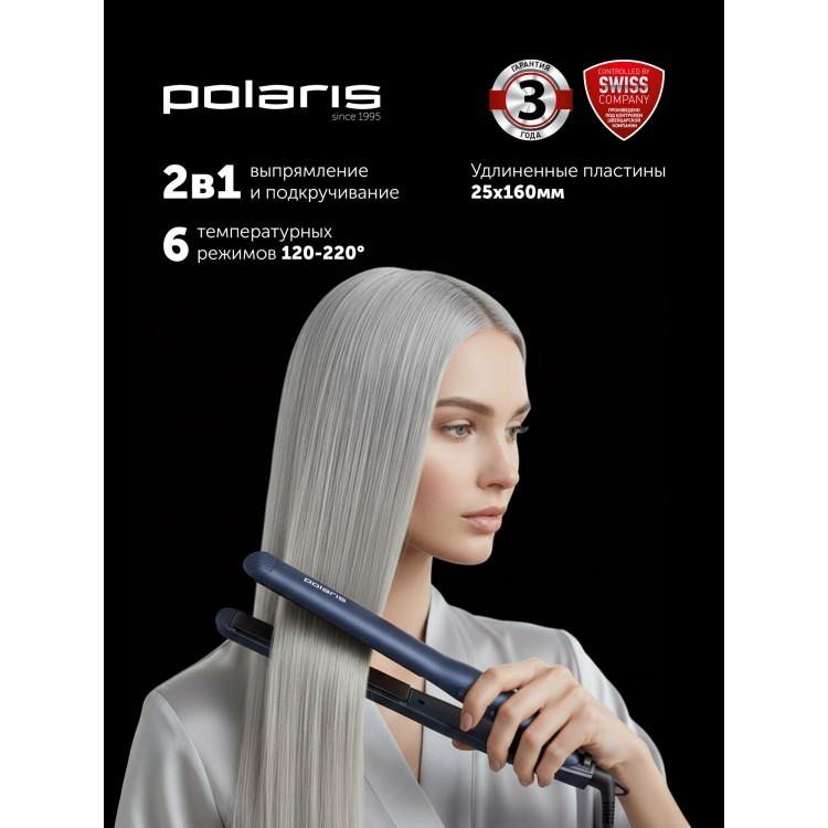 Название Стайлер Polaris PHS 2516Mi; Бренд Polaris; Цвет товара Синий; Версия Global; Линейка PRO collection; Тип Стайлер; Тип щипцов Мультистайлер; Дополнительные функции Автоматическое отключение, ионизация; Мощность 80 Вт; Количество температурных режимов 6; Максимальная температура нагрева 220 °C; Покрытие Керамическое; Длина пластин 120 мм; Ширина пластин 25 мм; Особенности Вращение шнура, цифровая регулировка температуры; Длина сетевого шнура 3 м; В комплекте Инструкция по эксплуатации, прибор; Длина 350 мм; Ширина 40 мм; Вес 0.85 кг; Срок службы 3 лет; Гарантийный срок 3 лет; Цвет синий;