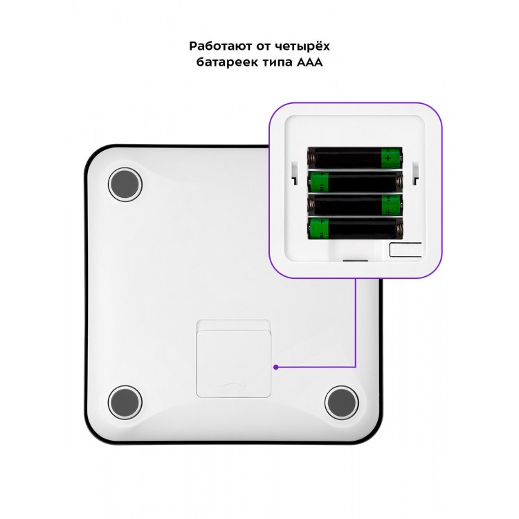 - Точность измерений;- Синхронизация с приложением: Данные с весов автоматически загружаются в мобильное приложение Fitdays, предоставляя полную картину состояния организма, включая динамику изменений веса и состава тела;- Стильный дизайн: Гладкий корпус из высококачественного стекла придает продукту привлекательность и современность;- Дополнительные функции: Помимо простого измерения веса, весы предоставляют детальную информацию о состоянии организма, позволяя лучше понимать своё здоровье и строить планы тренировок или диет;- Комплектация: В комплект входят батарейки формата AAA, позволяющие начать пользоваться устройством немедленно после покупки;- Простота установки и эксплуатации: Подключить весы к телефону и настроить работу приложений можно буквально за считанные минуты;- Мультипрофильность: Один аккаунт позволяет зарегистрировать нескольких пользователей, каждый сможет получать личные данные о своём здоровье.