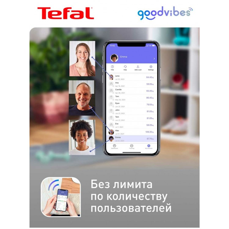 | Название | Весы напольные Tefal Goodvibes Sport BM9640S1, до 180 кг, белый |