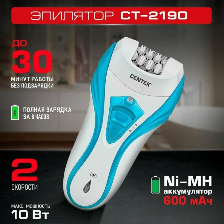 Эпилятор CENTEK CT-2190 — это стильный и функциональный прибор для удаления нежелательных волос на теле. Он имеет 2 скорости работы и 18 пинцетов, которые обеспечивают эффективное и безболезненное удаление волос.