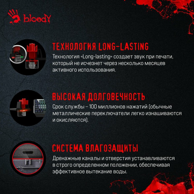 За свои деньги очень достойная механика, четкие срабатывания, комфортный ход клавиш, приятный звук, не слишком громкая. настройка подсветки как хочешь - хоть в лгбт, хоть в один цвет, причем оттенок сам можешь выбрать помимо базовых цветов, хороший комплект поставки с запасными клавишами, свичами, ключами и т д. Подсвечены и англ и рус буквы! Компактный формфактор, но с полноценным нампадом! Корпус пластик, но не хлипкий и не маркий, клава достаточно увесистая, не гуляет по столу, в целом печатать кайф на ней. До этого несколько лет юзал механику Logitech G G413 с их фирменными Romer-G свичами. По комфорту печати и отклику Bloody как по мне лучше, и стоит дешевле. Эту клаву юзаю 8й месяц, полет нормальный