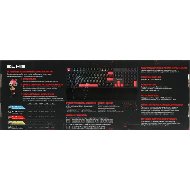 * Механические переключатели BLMS Red обеспечивают чёткое и плавное нажатие, что делает игровой процесс комфортным и приятным.
