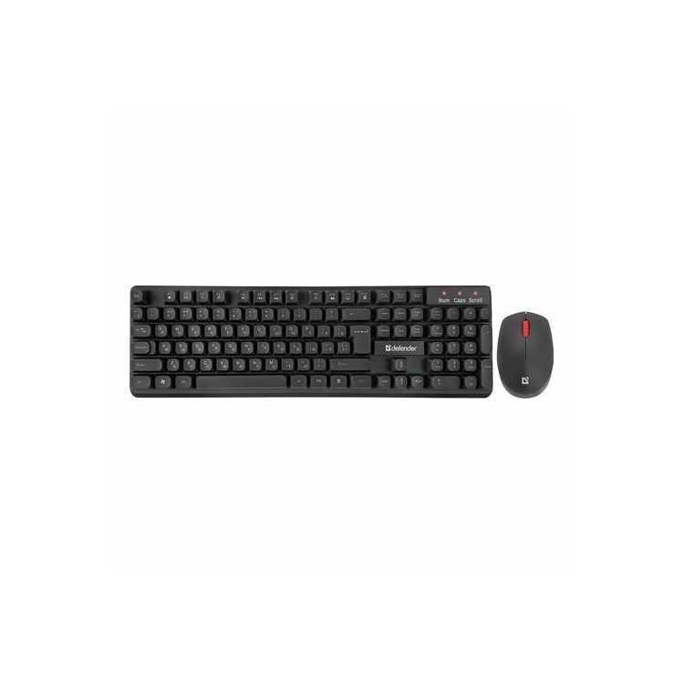 Название Комплект (клавиатура+мышь) Defender Milan C-992, USB 2.0, беспроводной, черный; Состав комплекта Клавиатура + мышь; Беспроводной комплект Беспроводная клавиатура, беспроводная мышь; Раскладка клавиатуры Английская/русская; Тип наушников Без наушников; Особенности конструкции Бесшумное нажатие клавиш мыши, островная клавиатура; Бренд Defender; Радиус действия беспроводной связи 10 м; Интерфейс подключения USB; Тип клавиатуры Мембранная; Общее количество клавиш клавиатуры 104; Количество дополнительных клавиш клавиатуры 12; Источник питания клавиатуры 1xAA; Размеры (ШxВxГ) 510x37x135 мм; Вес клавиатуры 400 г; Тип сенсора мыши Оптический светодиодный; Дизайн мыши Для правой и левой руки; Количество клавиш мыши 2; Частота опроса 2.4 Гц; Разрешение оптического сенсора 1000 dpi; Источник питания мыши 2xAAA; Размеры ДхШхВ 103x60x37 мм; Вес мыши 60 г; Цвет черный;