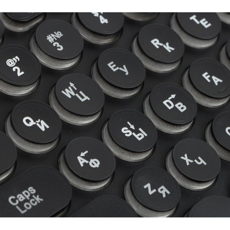 Размер символов русской и английской раскладки выполнены одинаковым размером что иногда сбивает с толку если нужно работать на разных языках, по крайней мере меня!!