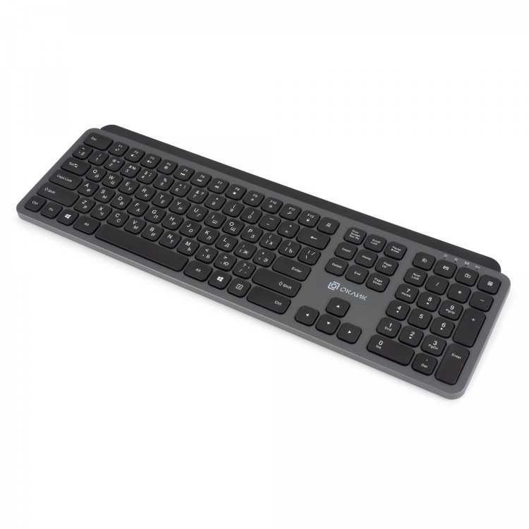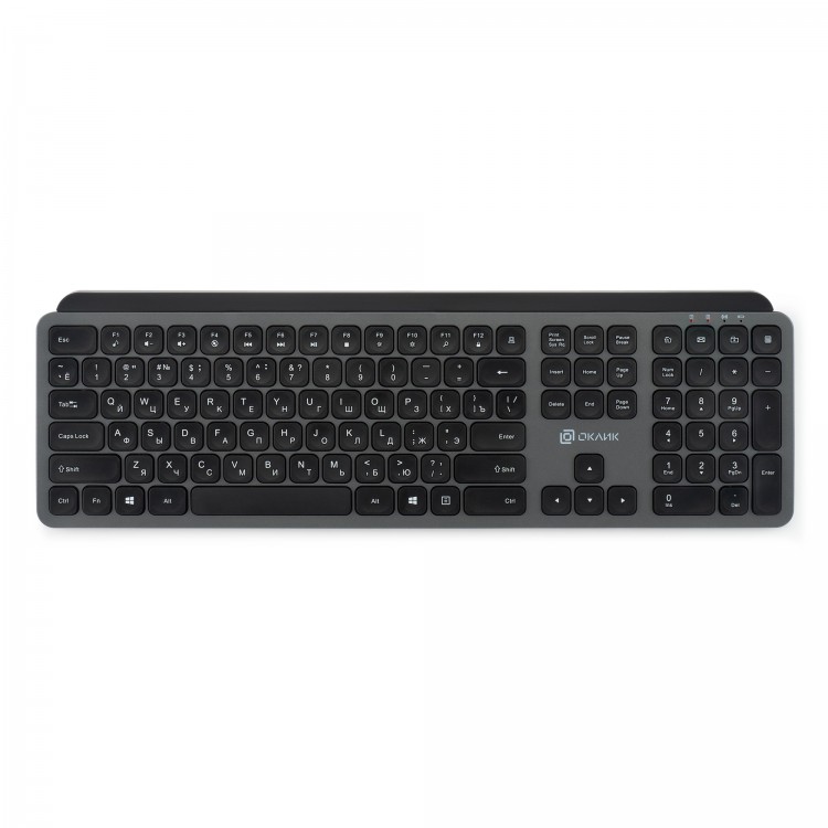 Клавиши откликаются быстро и тихо. Классическая раскладка, есть цифровой блок. Медийные клавиши.Отключение питания, заряд держится долго, связь стабильная.