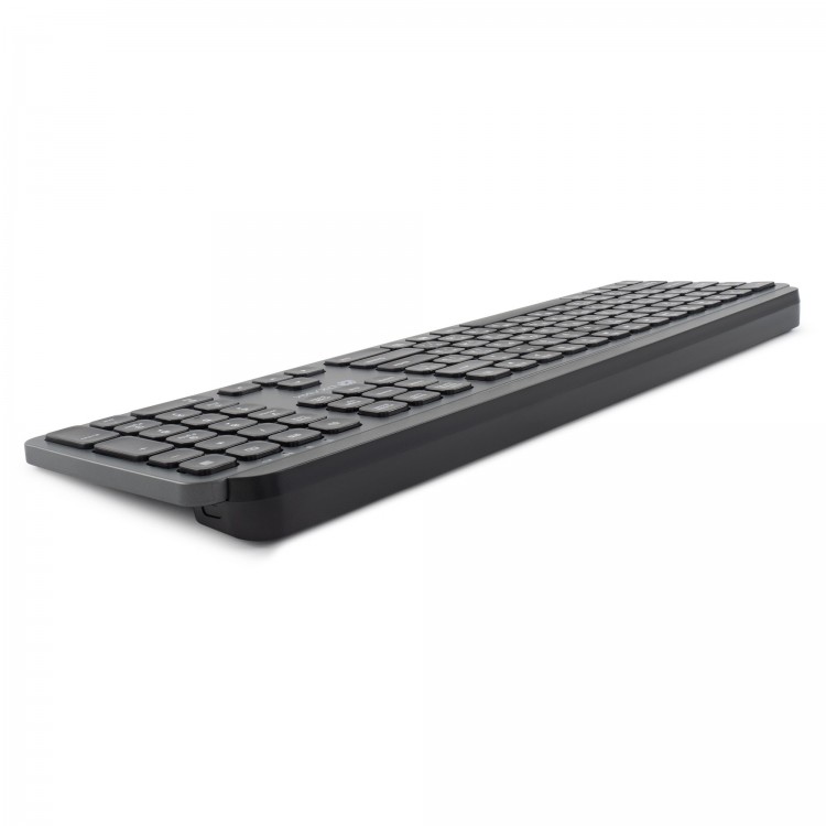 Беспроводная клавиатура удобна в использовании и не требует лишних проводов. Клавиши мягкие, нажатия тихие, что важно при длительном наборе текста никому не мешаешь.Качество связи всегда стабильное.Смотрится прикольно в плоском слим дизайне и на металлической основе.