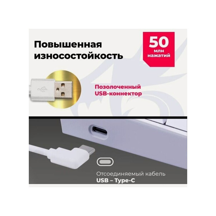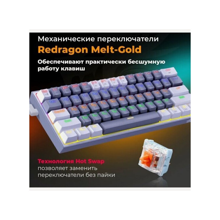 * Тип клавиатуры: механическая, с переключателями Redragon+Melt-Gold. Это обеспечивает высокую надёжность и долгий срок службы.