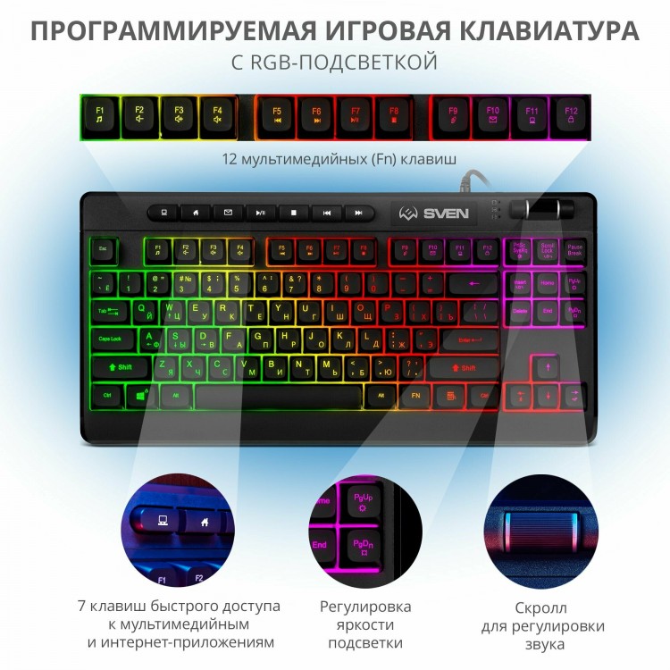 | Название | Игровая мембранная клавиатура SVEN KB-G8200 для компьютера и ноутбука (95 клавиш, ПО, RGB-подсветка) |