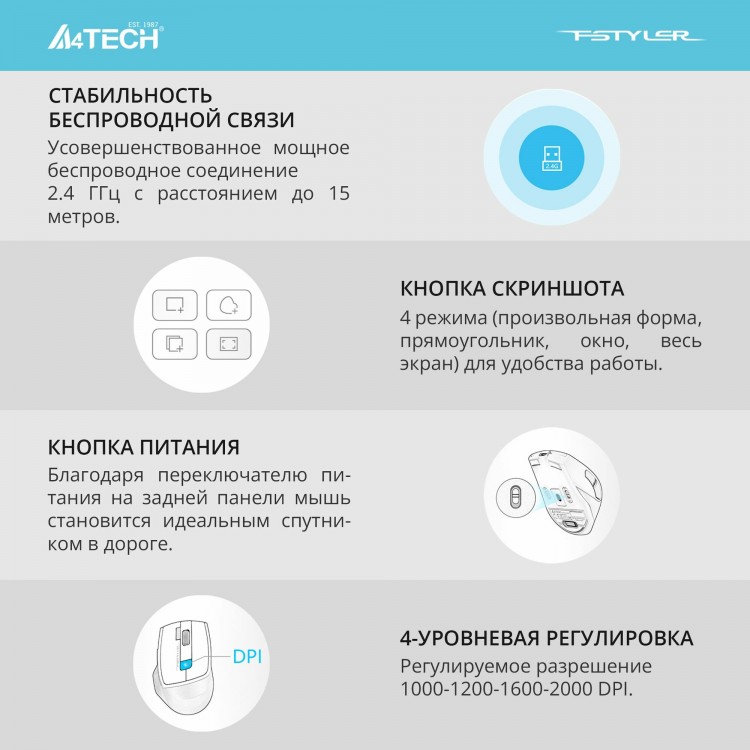 Ищете удобную и надёжную мышь для работы или игр? Тогда беспроводная мышь A4Tech Fstyler FG45CS Air — это то, что вам нужно!