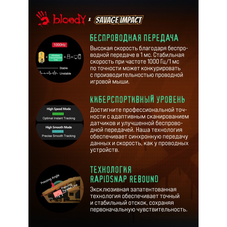 * Максимальное ускорение 40 и частота опроса USB порта 1000 гарантируют точность и скорость реакции.