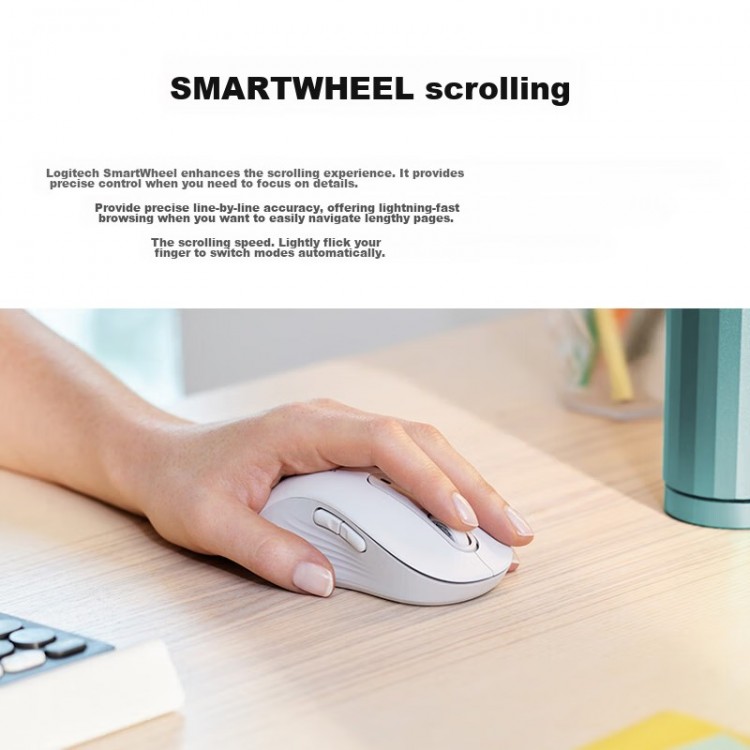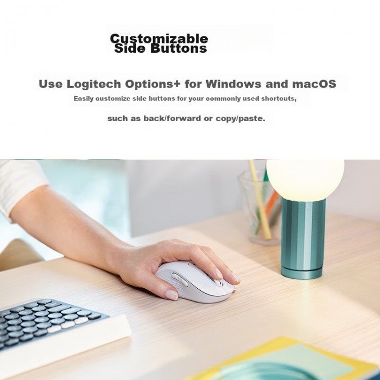 LOGITECH M755 имеет 5 кнопок, включая кнопку для изменения чувствительности сенсора и колесо прокрутки, что делает работу с текстом и изображениями более удобной. Дизайн мыши разработан специально для правой руки, что снижает нагрузку на запястье и предотвращает усталость при длительном использовании.