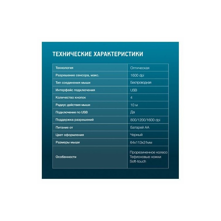 * Разрешение оптического сенсора 1600 dpi — возможность настройки чувствительности для разных задач.