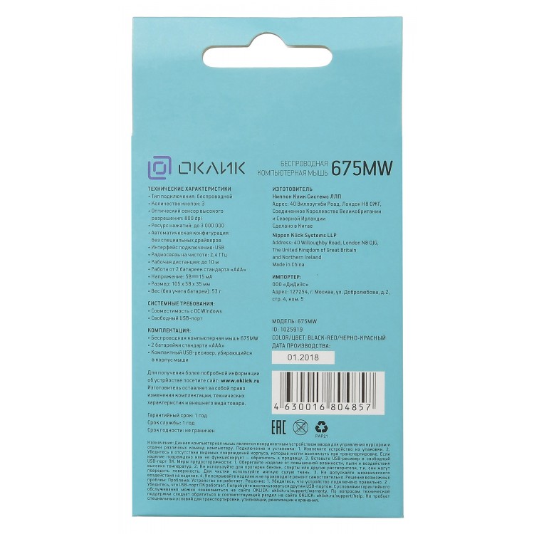 Название Беспроводная мышь OKLICK 675MW; Бренд OKLICK; Тип мышь; Тип сенсора мыши оптический светодиодный; Тип подключения беспроводной; Радиус действия беспроводной связи 10 м; Интерфейс подключения USB Type A, радиоканал, беспроводной радио; Разрешение оптического сенсора 1200 dpi; Длина 150 мм; Ширина 80 мм; Высота 45 мм; Вес 53 г; Дизайн для левой руки, для правой руки, для правой и левой руки; Встроенные опции Физические; Особенности Встроенное колесо прокрутки; Количество клавиш 3; Источник питания 2xAAA; Комплектация мышь, USB-приемник, 2 батарейки стандарта AAA; Гарантийный срок 1 г., актуальный срок гарантии указан в гарантийном талоне производителя, приложенному к товару, и может отличаться в большую или меньшую сторону на момент покупки; Цвет черный/красный;
