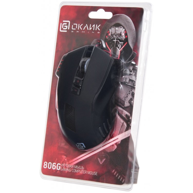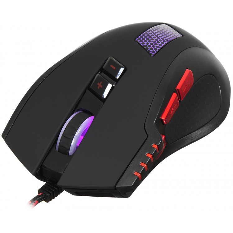 Удобная форма, яркая подсветка, 3200 дпи, резиновое колесико, 8 кнопок.