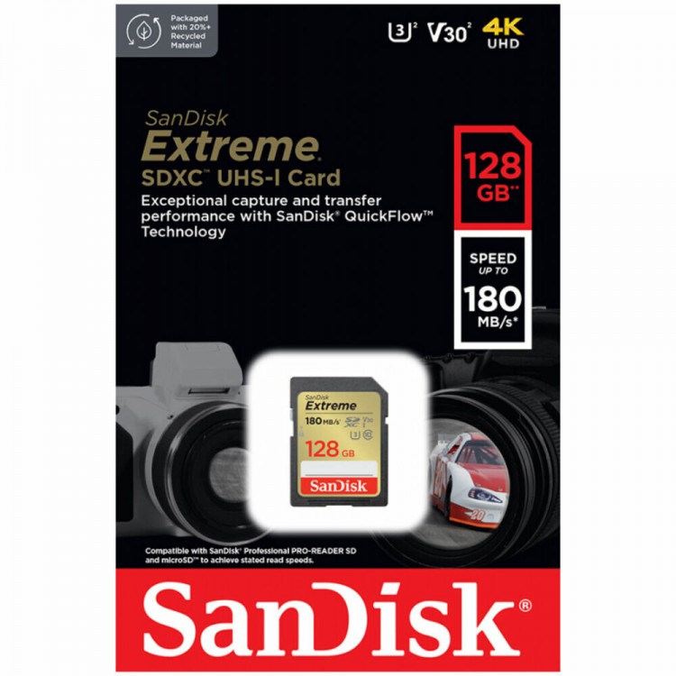 Карта памяти SanDisk SDXC Extreme Class 10 V30 UHS-I U3 128GB (черный)