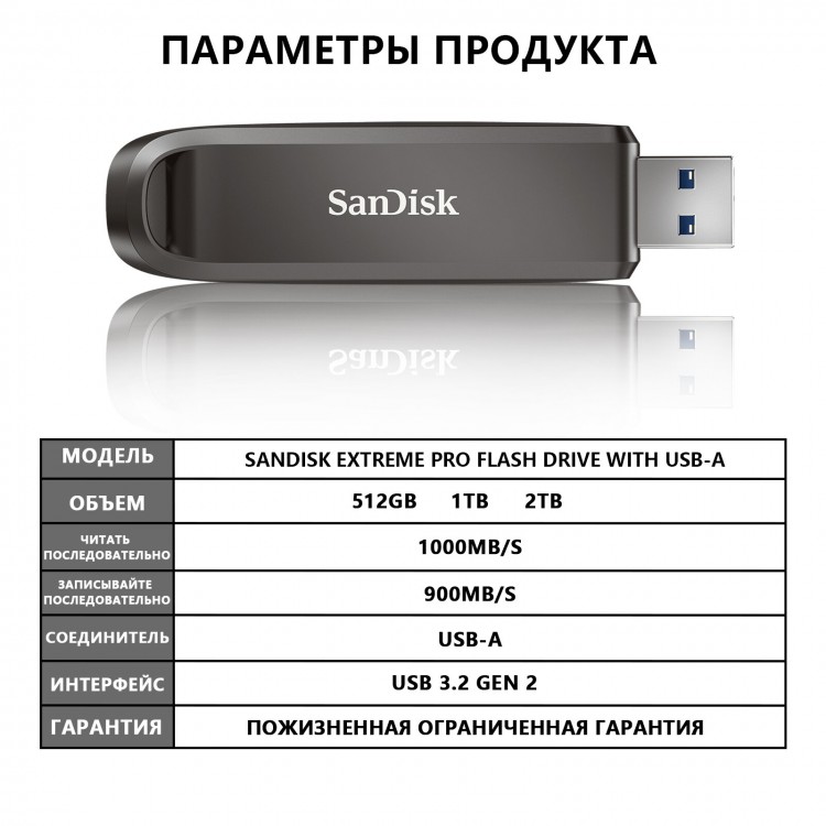 | Дополнительная информация | Твердотельный флэш-накопитель SanDisk Extreme PRO™ USB-A |