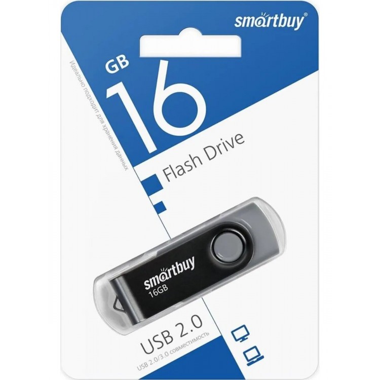 - Флешка SMARTBUY (SB016GB2TWK) UFD 2.0 16GB (черный)