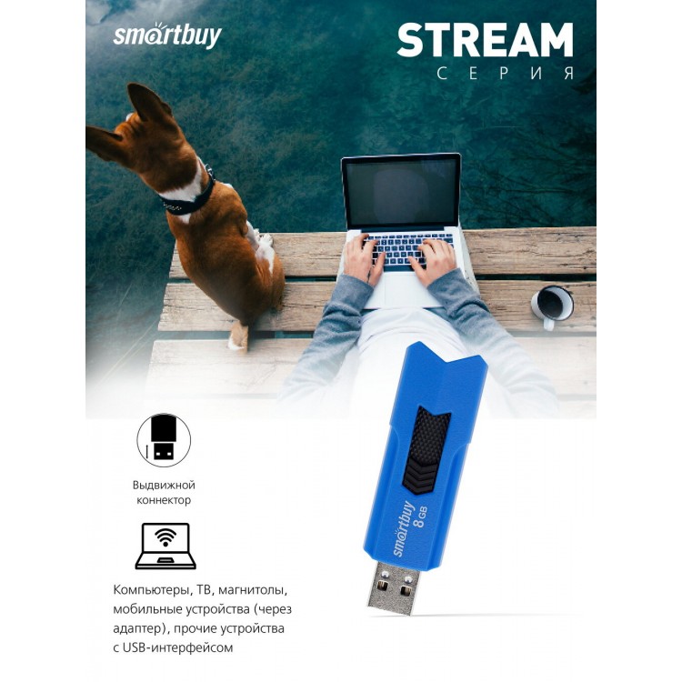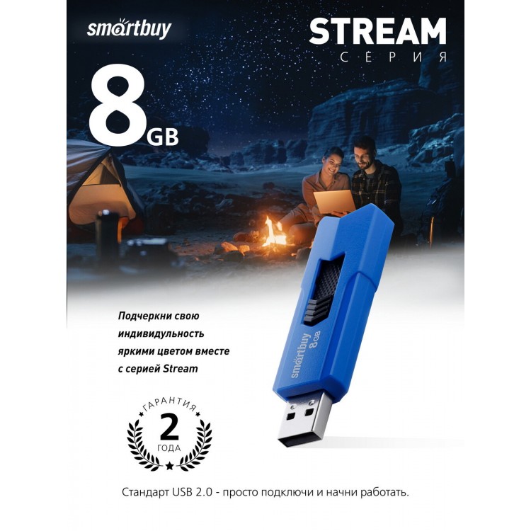 - Флешка SMARTBUY STREAM USB 2.0 8GB (SB8GBST-B) (синий)