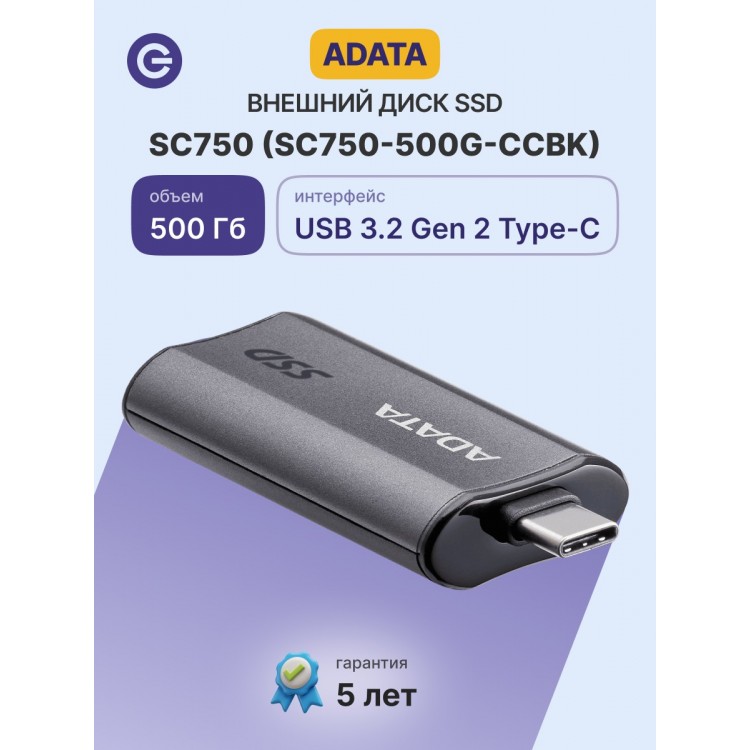 | Название | Внешний SSD диск ADATA EXTERNAL SSD SC750 500 ГБ (SC750-500G-CCBK) |