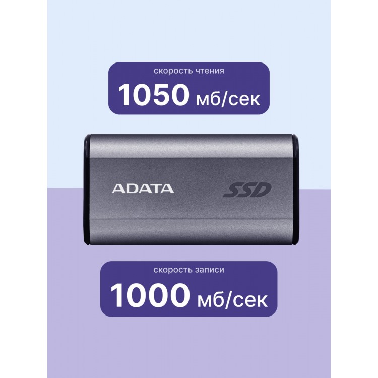 * Низкая цена без ущерба качеству. Несмотря на низкую цену, внешний SSD ADATA External SC750 обладает высокой скоростью чтения и записи данных — до 1050 МБ/с и 1000 МБ/с соответственно.