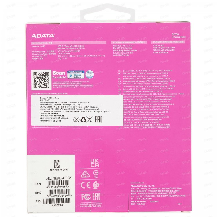 Ищете надёжный и быстрый способ хранения данных? Внешний SSD ADATA SE880 4 ТБ (AELI-SE880-4TCGY) — это то, что вам нужно!
