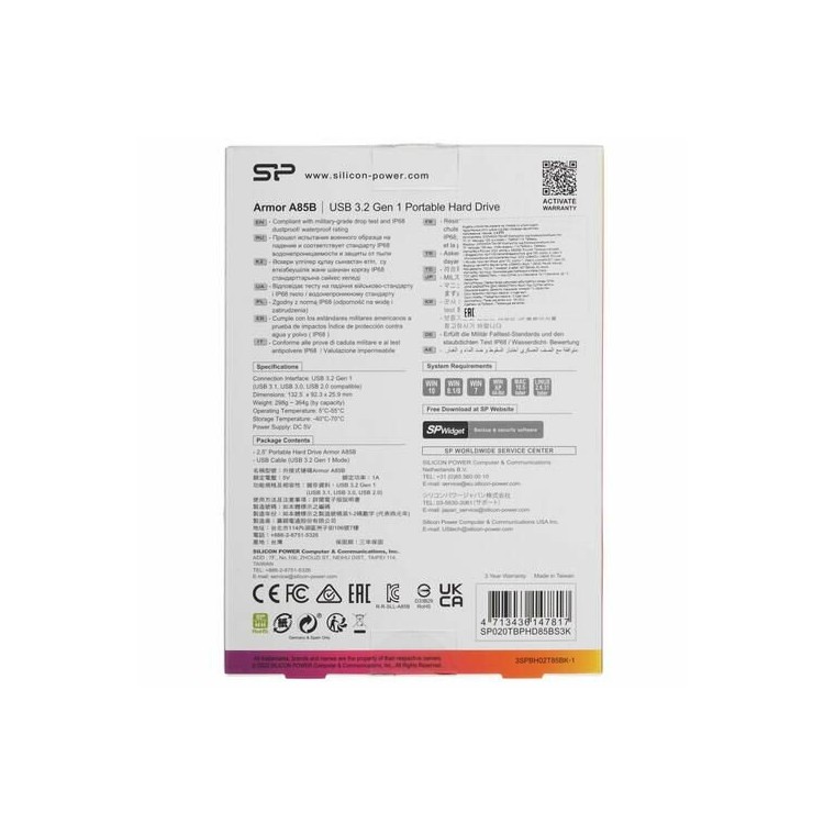 | Название | Жесткий диск Silicon Power USB 3.0 2TB SP020TBPHD85BS3K A85B Armor (5400rpm) 1.8" черный |