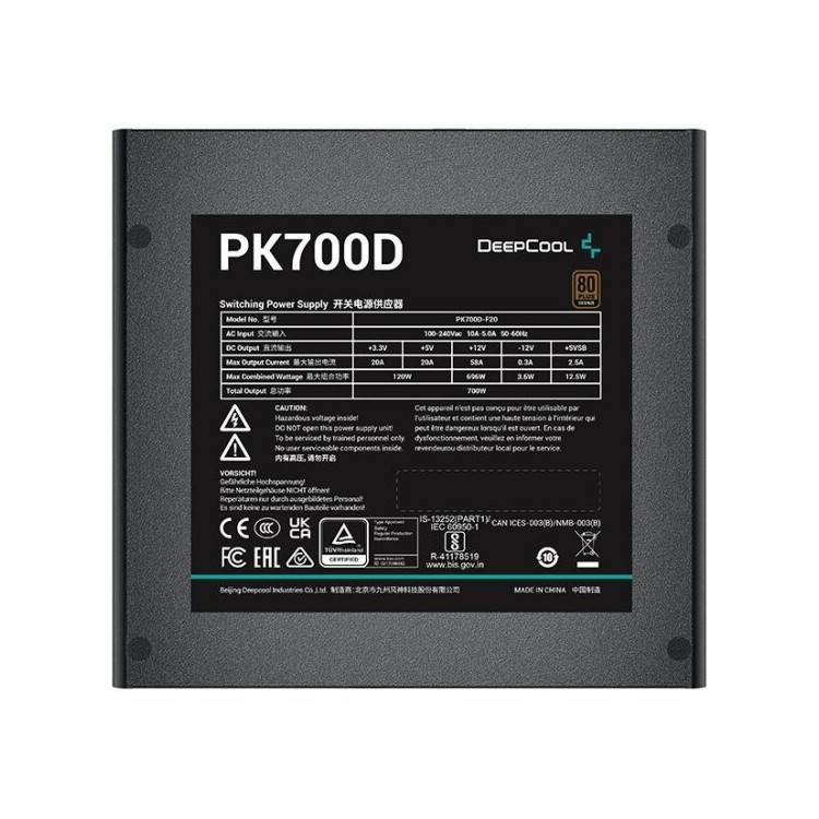 | Название | Блок питания Deepcool PK700D, для гейминга, 700Вт, 80 Plus Bronze |