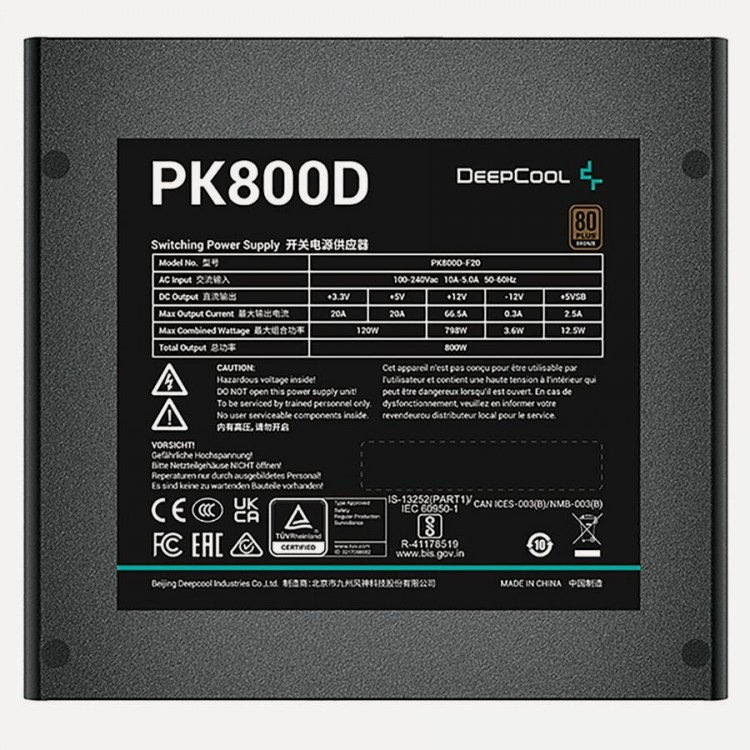 Этот блок питания с мощностью 800 Вт и форм-фактором ATX обеспечит стабильную работу вашего компьютера. С активным PFC и системой охлаждения с одним вентилятором диаметром 120 мм Deepcool PK800D гарантирует минимальный уровень шума 12 дБ.