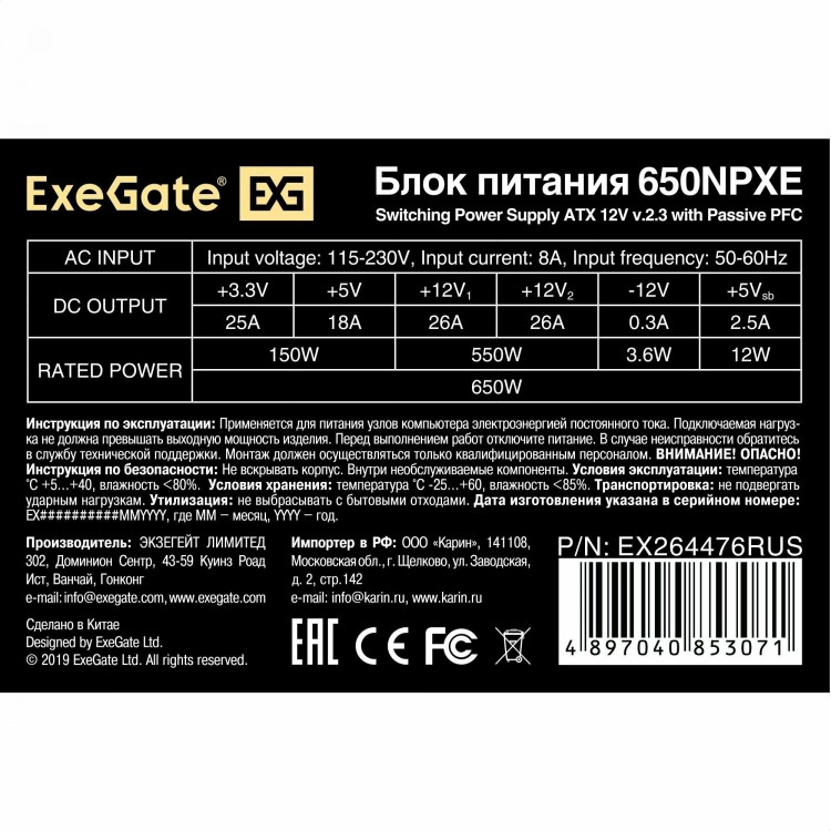 | Название | Блок питания ExeGate ATX-650NPXE 650W |