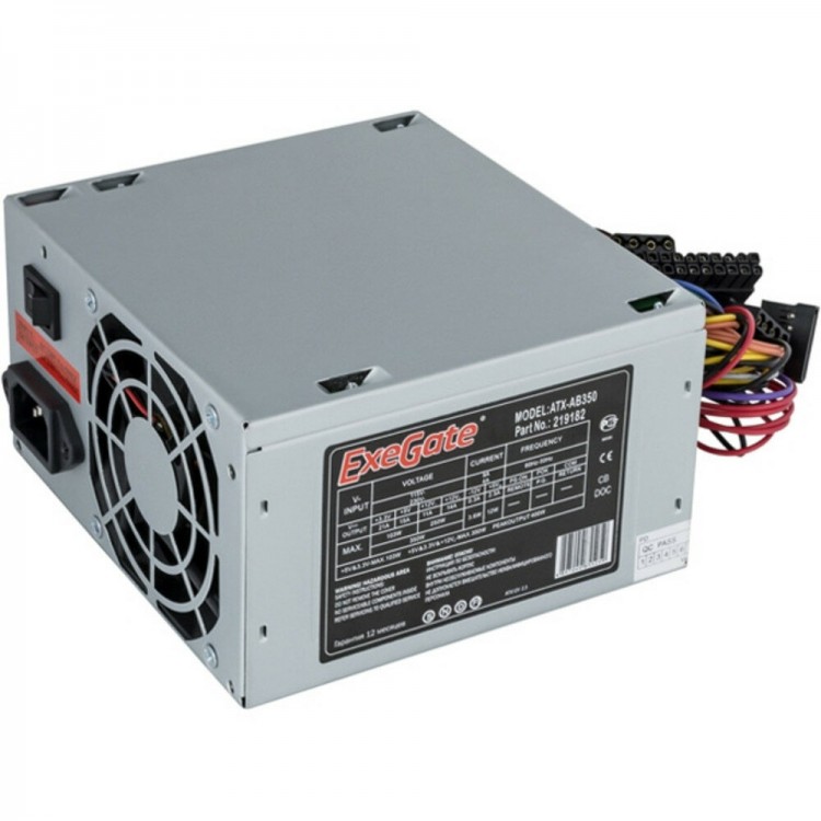 | Название | ExeGate EX219182RUS Блок питания 350W AB350 (ATX, 8cm fan, 24pin, 4pin, 3xSATA, 2xIDE) |