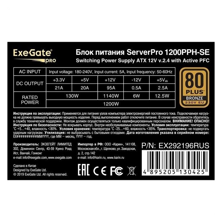 Ищете качественный блок питания для вашего сервера? Обратите внимание на модель ExeGate ServerPRO 80 PLUS Bronze 1200PPH-SE 1200W.