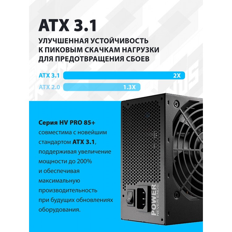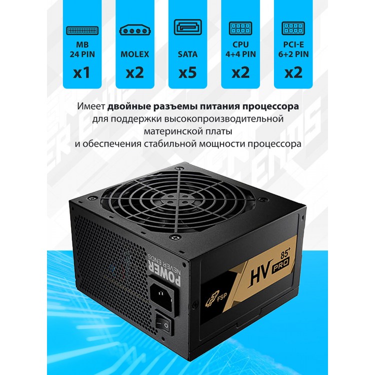| Название | Блок питания для ПК FSP HV PRO 650W 85 Plus, ATX3.1, FSP650-51AAC, OCP/OVP/OPP/SCP |