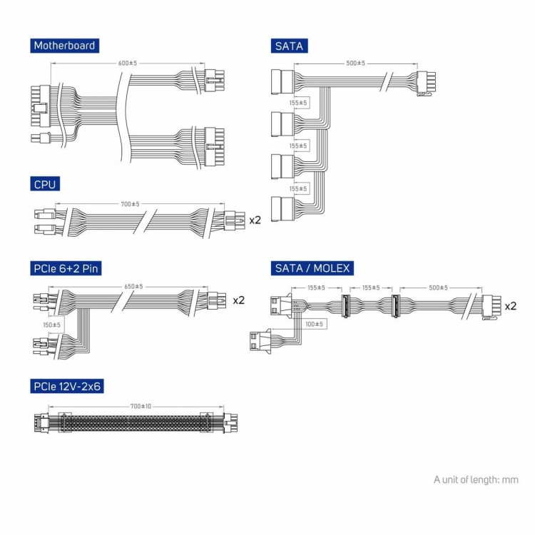 С 20+4 pin разъёмом для материнской платы и 8 разъёмами 15-pin SATA, а также 4 разъёмами 4-pin Molex и 4 pin + 4 pin x2 для питания процессора, этот блок питания готов удовлетворить потребности даже самых требовательных пользователей. Кроме того, наличие 4 разъёмов 6+2 pin для видеокарт делает его идеальным решением для игровых систем.