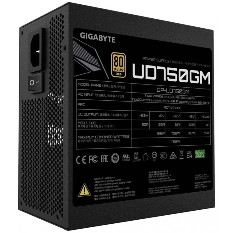 Благодаря активному PFC и стандарту эффективности 80 PLUS Gold, блок питания GIGABYTE GP-UD750GM PG5 V2 не только мощный, но и энергоэффективный. Система охлаждения с одним вентилятором диаметром 120 мм обеспечивает тихую и надёжную работу.