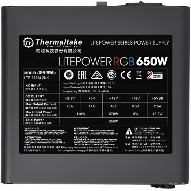 | Название | Блок питания Thermaltake Litepower RGB 650W (230V) |