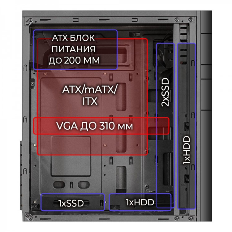 | Форм-фактор материнской платы | ATX, Micro-ATX, Mini-ITX |