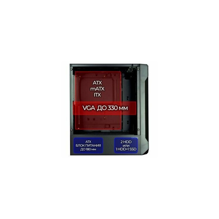 Отличный корпус за свои деньги. Только обращайте внимание на длину видеокарты. Пришлось без одного вентилятора посередине собирать)