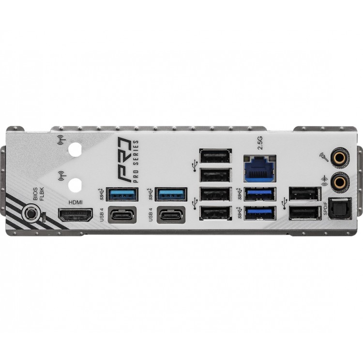 | Разъемы на задней панели | 2 x SMA (для антенны Wi-Fi), 2 x USB 3.2 Gen2x2 Type-C, 4 x USB 3.2 Gen1 Type-A, 6 x USB 2.0 Type-A, HDMI, LAN RJ-45, выход S/PDIF оптический |