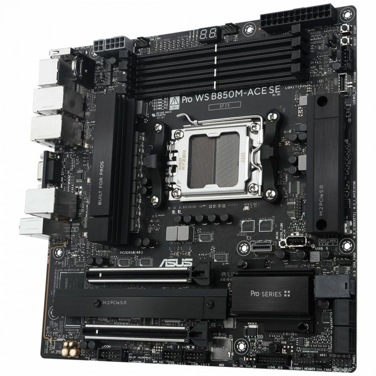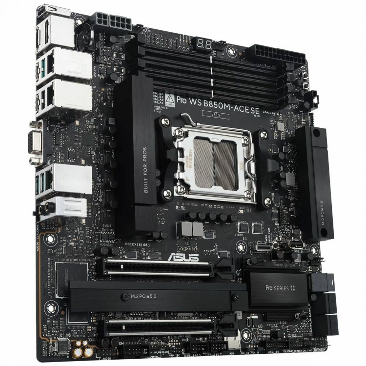 * Многочисленные разъёмы и интерфейсы. Материнская плата ASUS PRO WS B850M-ACE SE оснащена USB 3.2 Gen1 Type-A, USB 2.0, разъёмами M.2, DisplayPort, HDMI, VGA и другими.