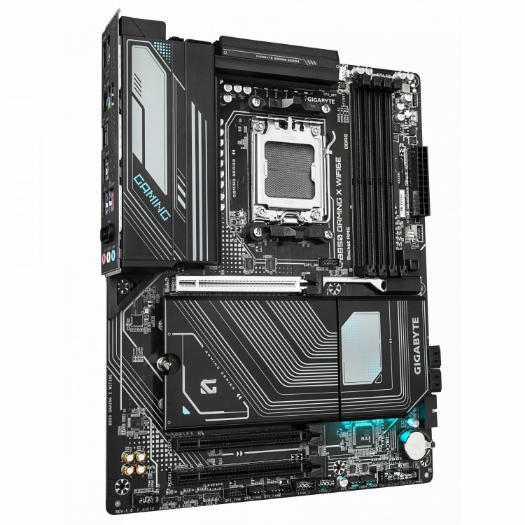 Толстый текстолит, кнопка для извлечения видеокарты из слота PCI-E, удобное расположение батарейки, один большой радиатор сразу на три слота NVMe с термопрокладками и удобные фиксаторы (не нужны винты), ну и конечно bluetooth и wi-fi