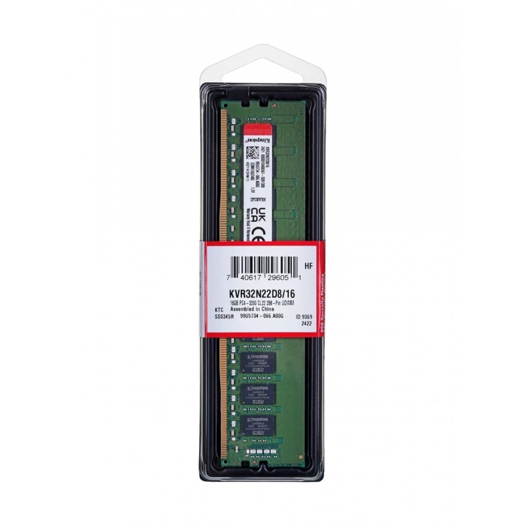 | Название | Оперативная память KINGSTON Valueram DIMM DDR4 16GB 3200 MHz (KVR32N22D8/16WP) |