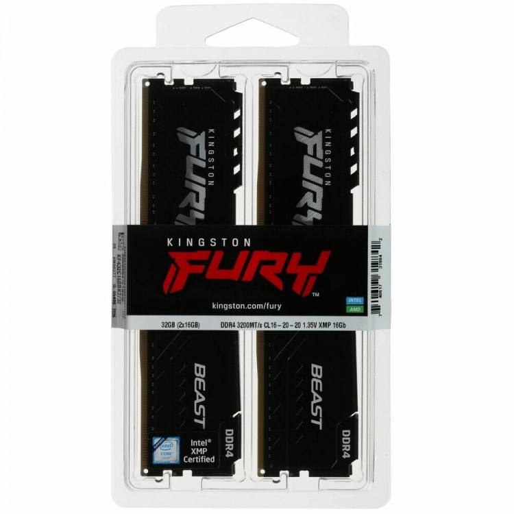 Оперативная память Kingston Fury Beast Black 32 ГБ (16 ГБ x 2 шт.) DDR4 3200 МГц DIMM CL16 (KF432C16BB1K2/32WP)
