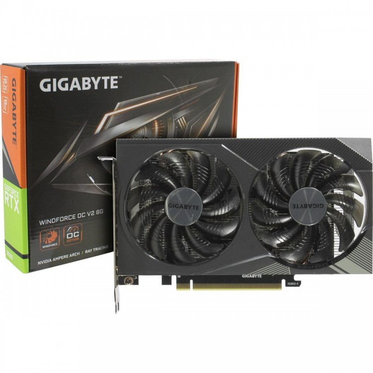 Видеокарта GIGABYTE GeForce RTX 3050 WINDFORCE OC V2 8GB (GV-N3050WF2OCV2-8GD), Retail