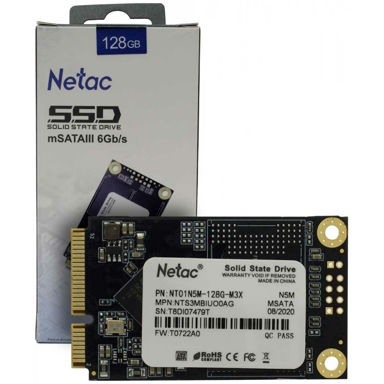 Бренд NETAC; Модель N5M; Тип жесткого диска SSD; Форм-фактор mSATA; PartNumber/Артикул Производителя NT01N5M-128G-M3X; Объем накопителя 128; Максимальная скорость чтения 510; Максимальная скорость записи 440; Время наработки на отказ 1500000; Разъем mSATA; Тип памяти NAND 3D; Ресурс TBW 70; Потребляемая мощность 3.3; Толщина товара 4.85; Ширина товара 29.8; Длина товара 50.8; Для ПК/ноутбука ДА; Ссылка на сайт поставщика/вендора https://www.netac.com/product/N5M-12.html; Ударостойкость при хранении 1500 G; Длина упаковки (ед) 0.13; Ширина упаковки (ед) 0.065; Высота упаковки (ед) 0.015; Габариты упаковки (ед) ДхШхВ 0.13x0.065x0.015; Объем упаковки (ед) 0.00012675; Интерфейс SATA III; Поддержка TRIM ДА; Ударостойкость при работе 1500 G; Вес устройства 8; Вес упаковки (ед) 0.05;