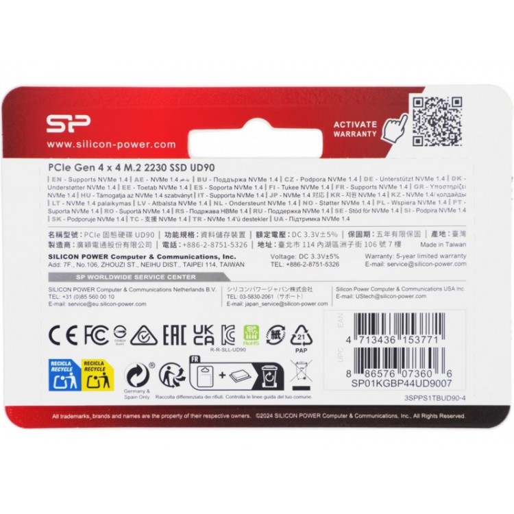 | Название | Накопитель SSD Silicon Power PCIe 4.0 x4 1TB SP01KGBP44UD9007 M-Series UD90 M.2 2230 |